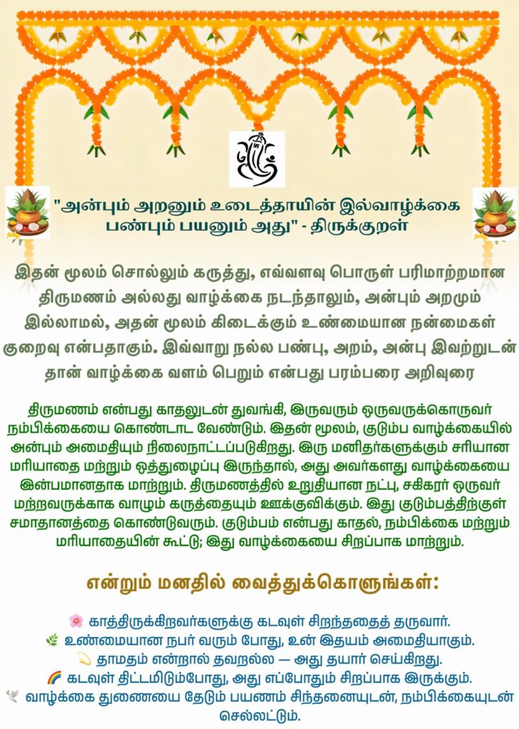 Disclaimer: இந்த இணையதளத்தில் உள்ள அனைத்து விவரங்கள் பயனர்கள் வழங்கியது. தவறான தகவல்களுக்கு நாங்கள் பொறுப்பல்ல. யாராவது தவறாக தகவல்களை பயன்படுத்தினால், தயவுசெய்து உடனடியாக எங்களை தொடர்பு கொள்ளவும். திருமண முடிவுகளை எப்போதும் உங்கள் பக்கத்திலிருந்து முழுமையான சரிபார்ப்பு செய்யவும்.